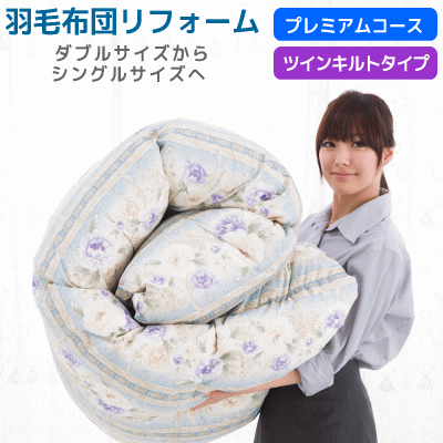 [全商品P5倍]羽毛布団打ち直し送料無料 足し羽毛プレミアムマザーグース300g プレミアムコース ダブルからシングルに打ち直しツインキルトにリフォーム[▼送無] smtb-F RCP 羽毛ふとん 羽毛ぶとん 旅館 ホテル 民宿 宿 ペンション
