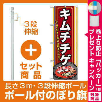 【プレゼント付】【セット商品】3m・3段伸縮のぼりポール(竿)付 韓国料理のぼり旗 内容:キムチチゲ 下段にイラスト(SNB-524)