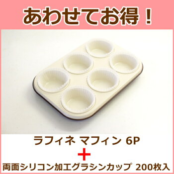 【あわせてお得!】ラフィネ(raffine) ふっ素加工マフィン型プレート6個取り+★日本製★ "くっつきにくい"両面シリコン加工グラシンカップ9号深型 200枚入
