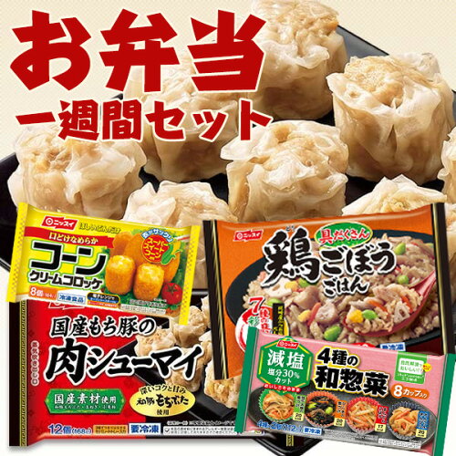 【8アイテム入り】一週間(5日間)お弁当セット 送料無料[ ニッスイ冷凍食品 冷凍 時短 電子レンジ おかず ランチ お手軽 いきなりステーキ ビーフガーリックピラフ 鶏ごぼう つくね串 和惣菜 肉シューマイ コーン コロッケ ほうれん草 銀ひらす 醤油 お助けセット]
